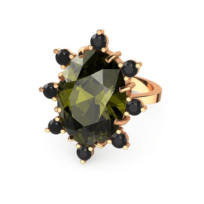 Peridot ve siyah zirkon 925 ayar rose altın kaplama gümüş yüzük