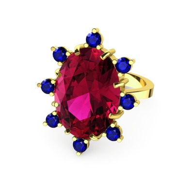 Rodolit garnet ve lab safir 8 ayar altın yüzük
