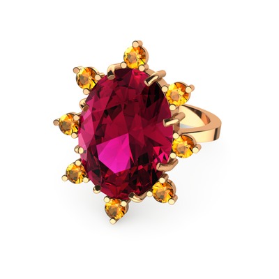 Rodolit garnet ve sitrin 14 ayar rose altın yüzük