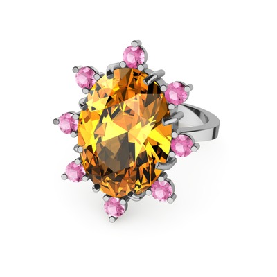 Sitrin ve pembe kuvars 8 ayar beyaz altın yüzük