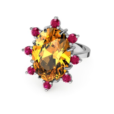 Sitrin ve rodolit garnet 18 ayar beyaz altın yüzük