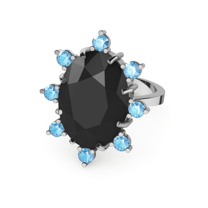 Siyah zirkon ve akuamarin 14 ayar beyaz altın yüzük
