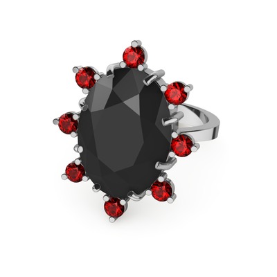 Siyah zirkon ve garnet 14 ayar beyaz altın yüzük