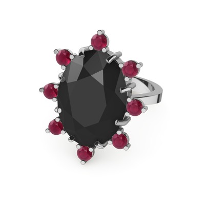Siyah zirkon ve kök yakut 14 ayar beyaz altın yüzük