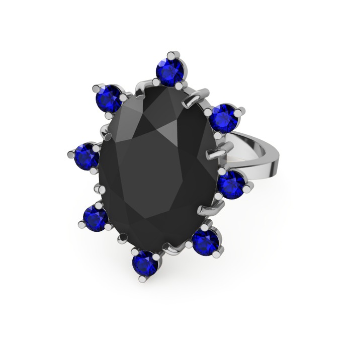 Siyah zirkon ve lab safir 8 ayar beyaz altın yüzük