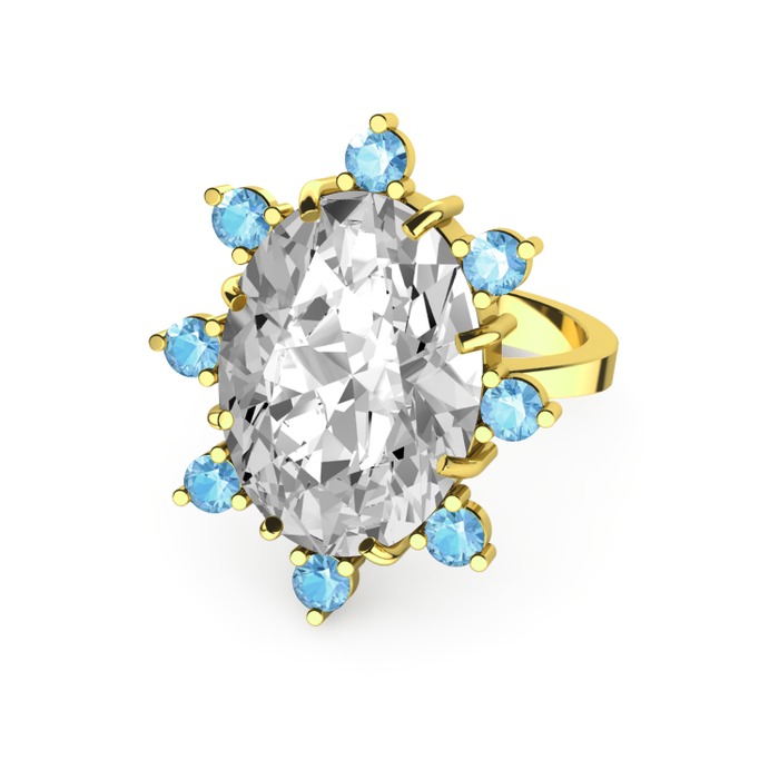Swarovski ve akuamarin 18 ayar altın yüzük
