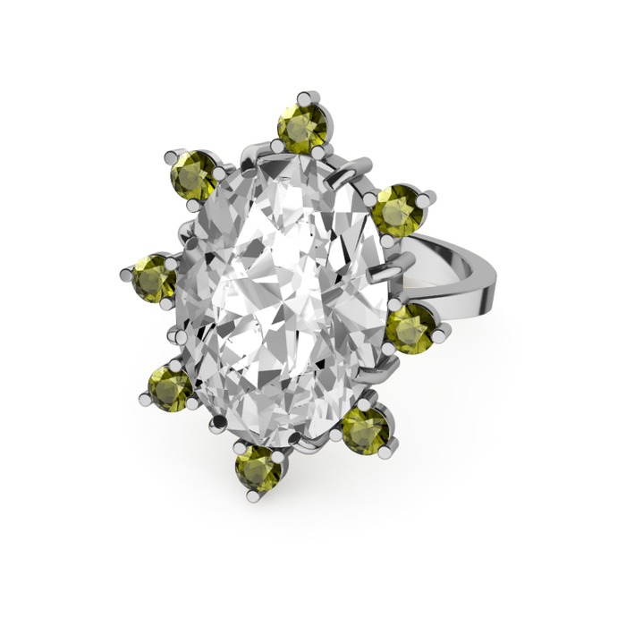 Swarovski ve peridot 18 ayar beyaz altın yüzük