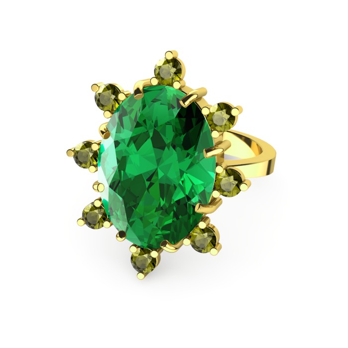 Yeşil kuvars ve peridot 925 ayar altın kaplama gümüş yüzük