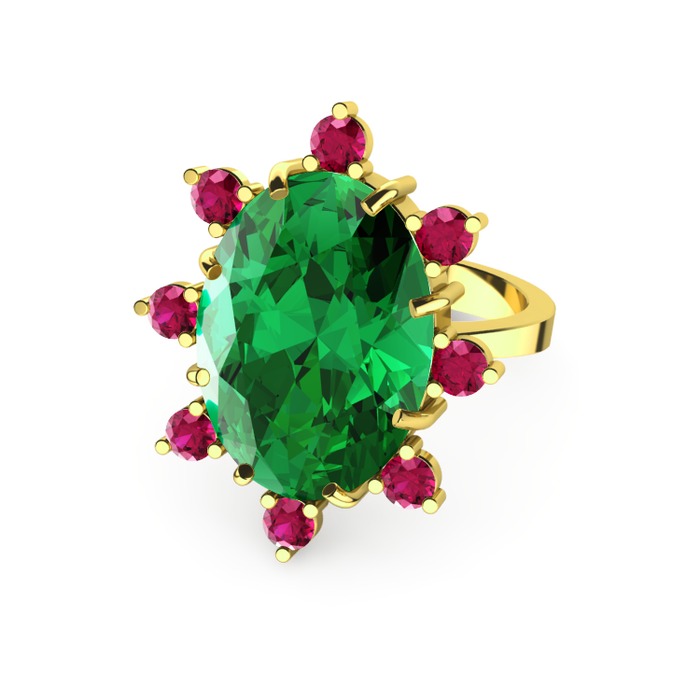 Yeşil kuvars ve rodolit garnet 18 ayar altın yüzük