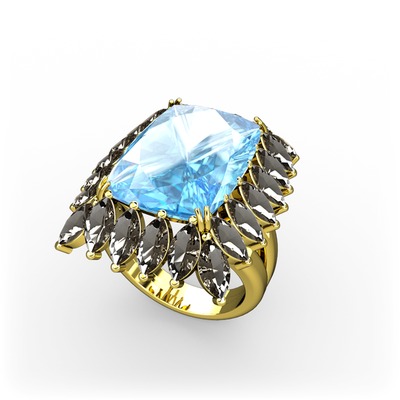 Akuamarin ve dumanlı kuvars 8 ayar altın yüzük
