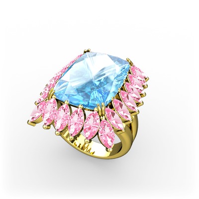 Akuamarin ve pembe kuvars 14 ayar altın yüzük