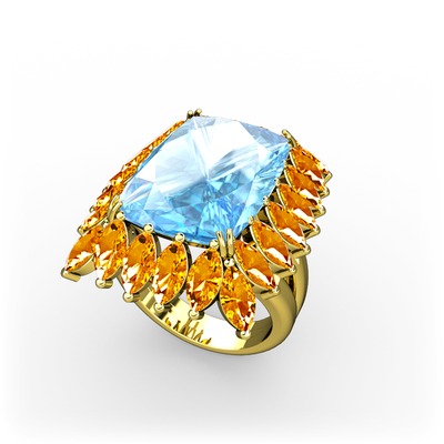 Akuamarin ve sitrin 8 ayar altın yüzük