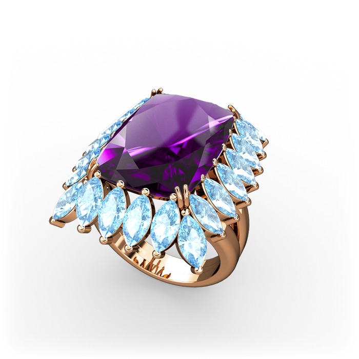 Ametist ve akuamarin 18 ayar rose altın yüzük