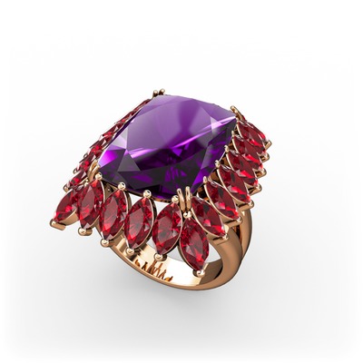 Ametist ve garnet 14 ayar rose altın yüzük