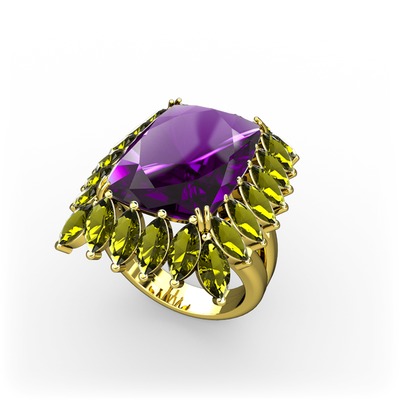 Ametist ve peridot 14 ayar altın yüzük