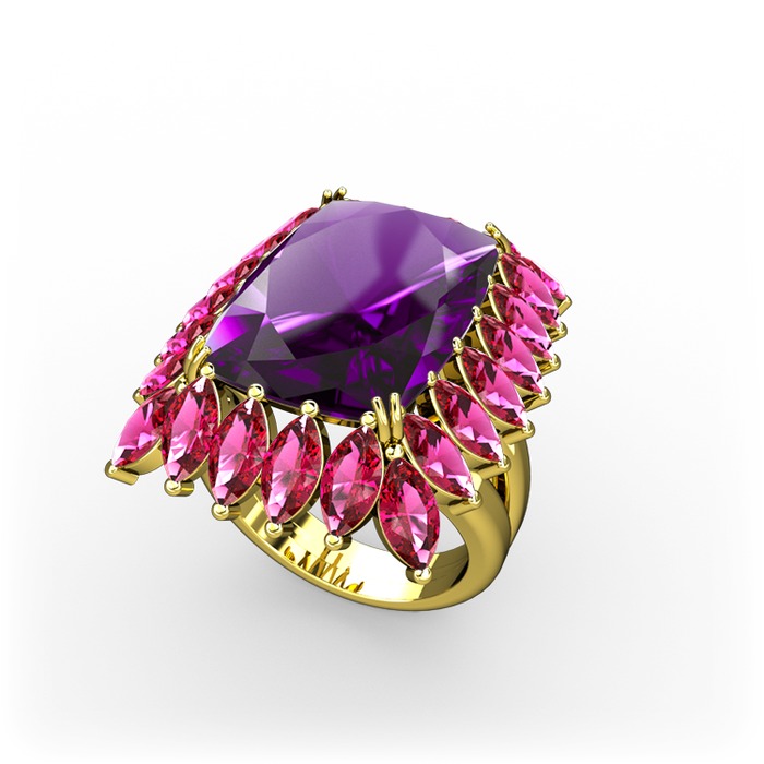 Ametist ve rodolit garnet 14 ayar altın yüzük
