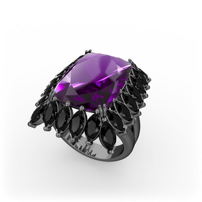 Ametist ve siyah zirkon 925 ayar siyah rodyum kaplama gümüş yüzük