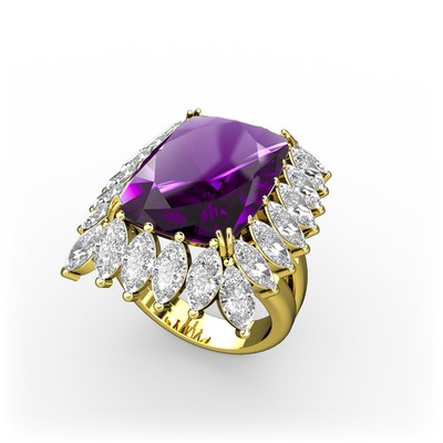 Ametist ve swarovski 925 ayar altın kaplama gümüş yüzük