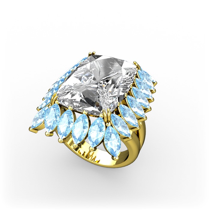 Beyaz zirkon ve akuamarin 8 ayar altın yüzük