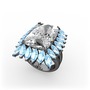 Beyaz zirkon ve akuamarin 925 ayar siyah rodyum kaplama gümüş yüzük