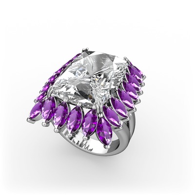 Beyaz zirkon ve ametist 14 ayar beyaz altın yüzük