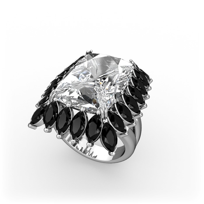 Beyaz zirkon ve siyah zirkon 925 ayar gümüş yüzük