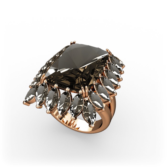 Dumanlı kuvars 14 ayar rose altın yüzük