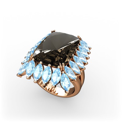 Dumanlı kuvars ve akuamarin 925 ayar rose altın kaplama gümüş yüzük