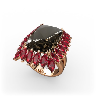 Dumanlı kuvars ve garnet 8 ayar rose altın yüzük