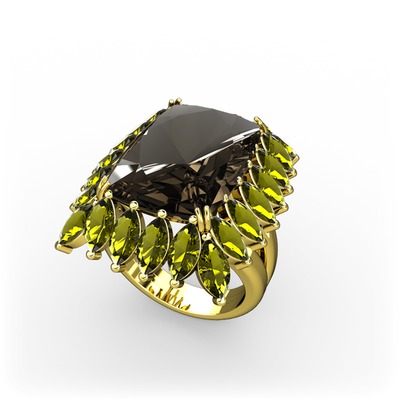 Dumanlı kuvars ve peridot 14 ayar altın yüzük