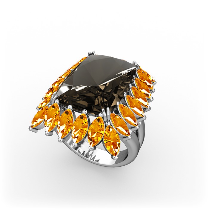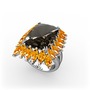 Dumanlı kuvars ve sitrin 8 ayar beyaz altın yüzük