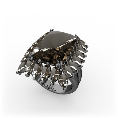 Dumanlı kuvars 925 ayar siyah rodyum kaplama gümüş yüzük