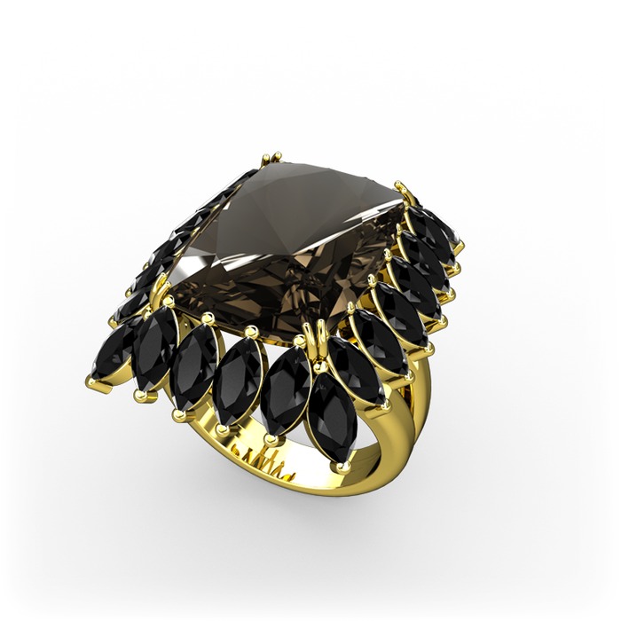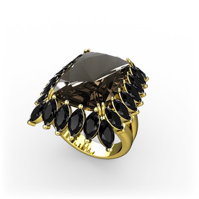 Dumanlı kuvars ve siyah zirkon 8 ayar altın yüzük
