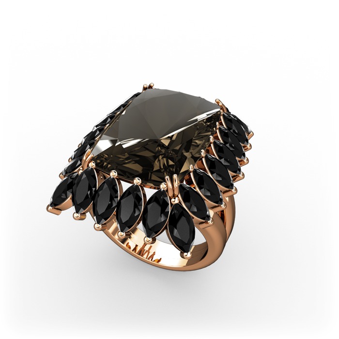 Dumanlı kuvars ve siyah zirkon 8 ayar rose altın yüzük