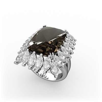 Dumanlı kuvars ve swarovski 8 ayar beyaz altın yüzük