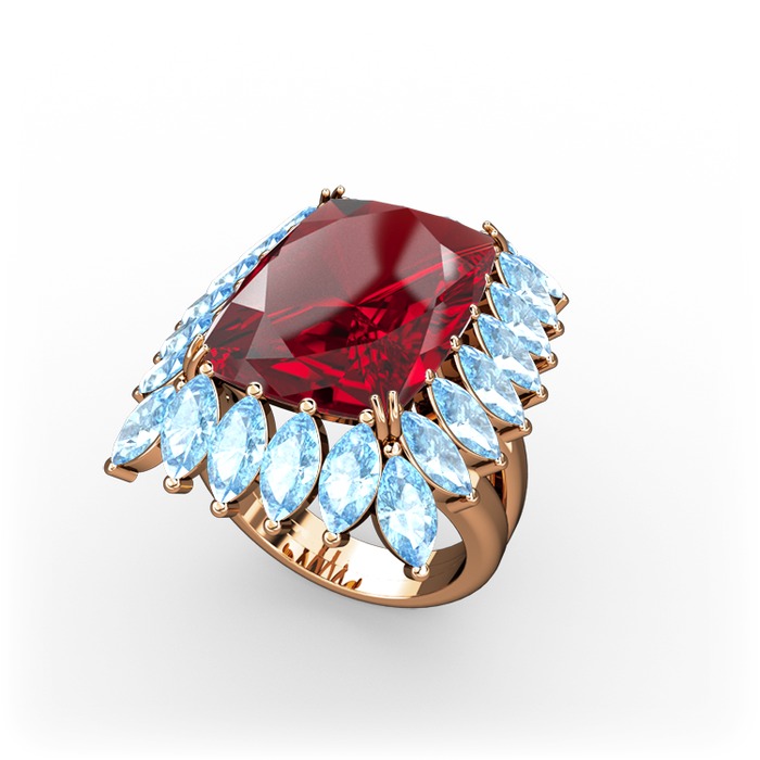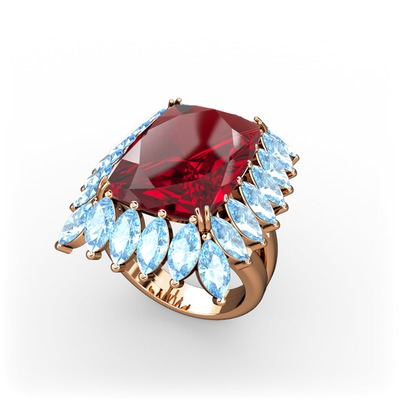 Garnet ve akuamarin 925 ayar rose altın kaplama gümüş yüzük