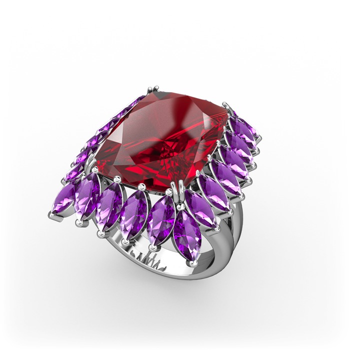 Garnet ve ametist 925 ayar gümüş yüzük