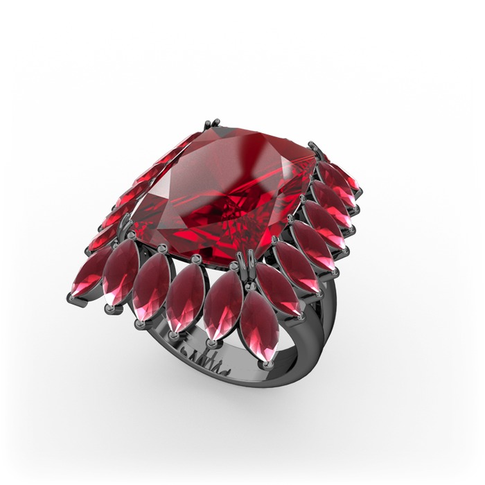 Garnet ve kök yakut 925 ayar siyah rodyum kaplama gümüş yüzük