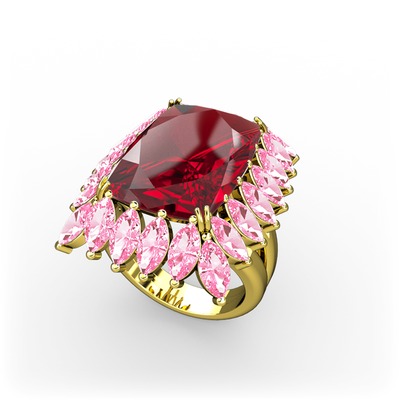 Garnet ve pembe kuvars 925 ayar altın kaplama gümüş yüzük