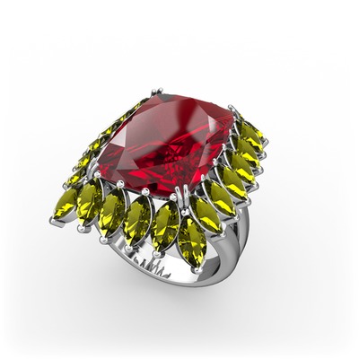 Garnet ve peridot 18 ayar beyaz altın yüzük
