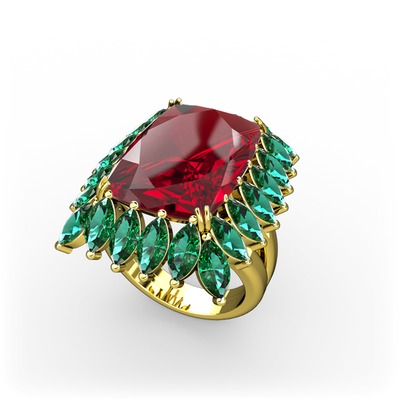 Garnet ve yeşil kuvars 925 ayar altın kaplama gümüş yüzük