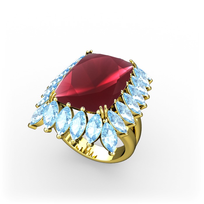 Kök yakut ve akuamarin 14 ayar altın yüzük