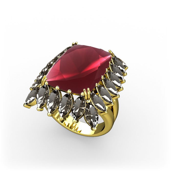Kök yakut ve dumanlı kuvars 14 ayar altın yüzük