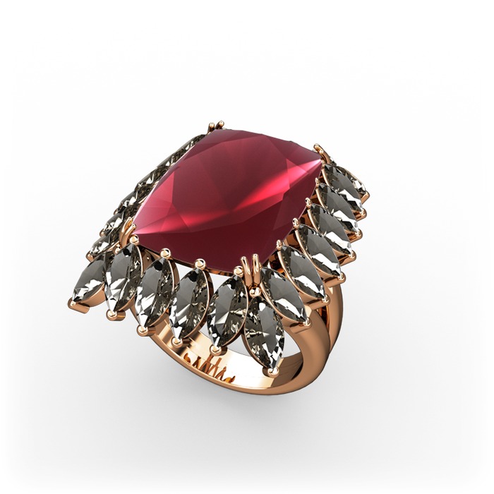 Kök yakut ve dumanlı kuvars 18 ayar rose altın yüzük