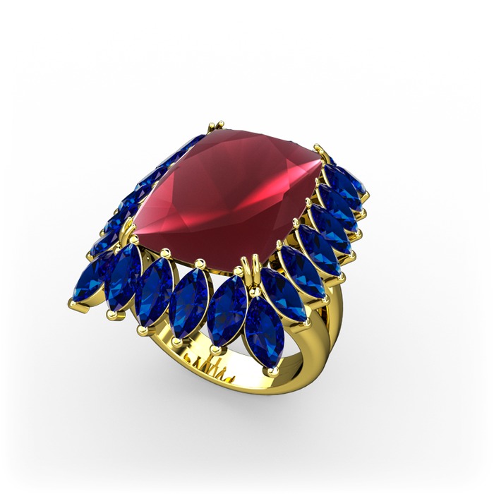 Kök yakut ve lab safir 8 ayar altın yüzük