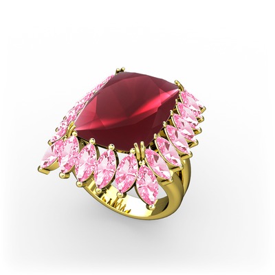 Kök yakut ve pembe kuvars 14 ayar altın yüzük