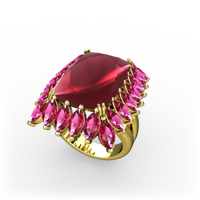 Kök yakut ve rodolit garnet 8 ayar altın yüzük