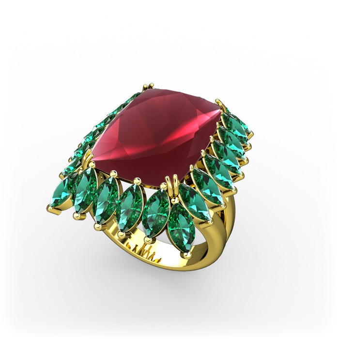 Kök yakut ve yeşil kuvars 925 ayar altın kaplama gümüş yüzük
