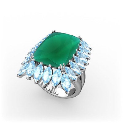 Kök zümrüt ve akuamarin 18 ayar beyaz altın yüzük
