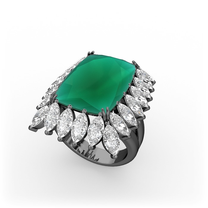 Kök zümrüt ve beyaz zirkon 925 ayar siyah rodyum kaplama gümüş yüzük